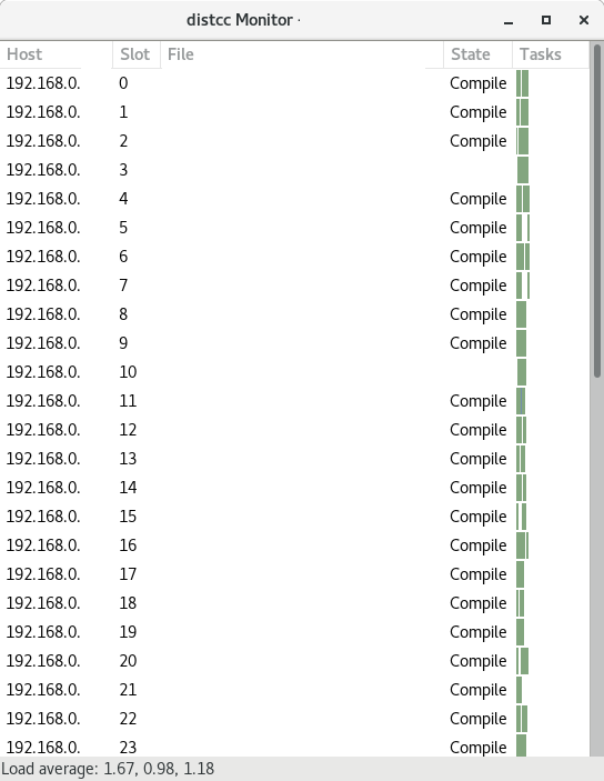 과정 1 에서 설치한 distcc monitor를 이용하여 빌드 상태 확인이 가능하다.