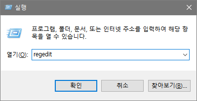 시작 -> 실행 (Windows + R) -> regedit